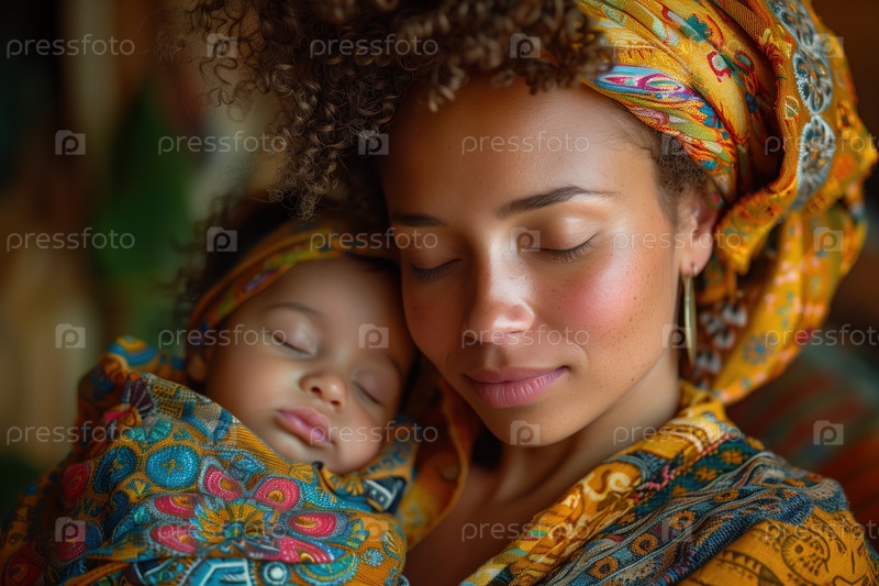 Молодая мать с новорожденным ребенком в красочном платке