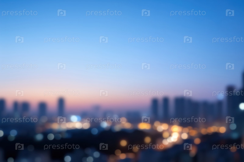 Абстрактное размытие боке городского пейзажа на фоне сумерек