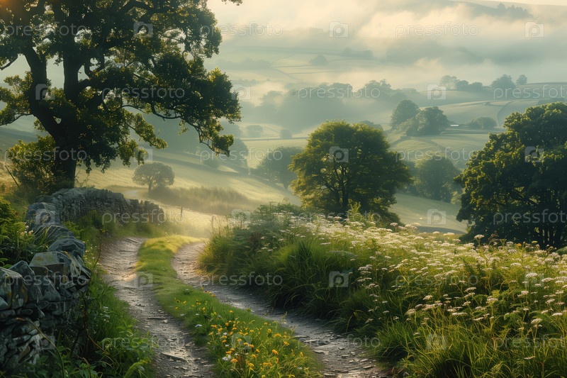 Красивый европейский сельский пейзаж в утреннем свете. летнее время