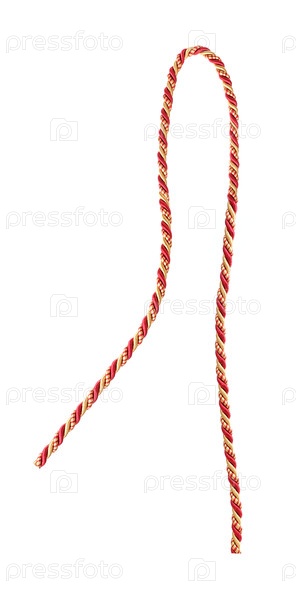 Шелковая красная и золотая веревка, изолированная на белом фоне