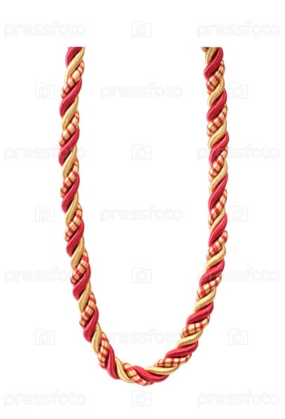 Шелковая красная и золотая веревка, изолированная на белом фоне