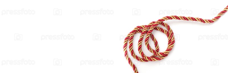 Шелковая красная и золотая веревка, изолированная на белом фоне