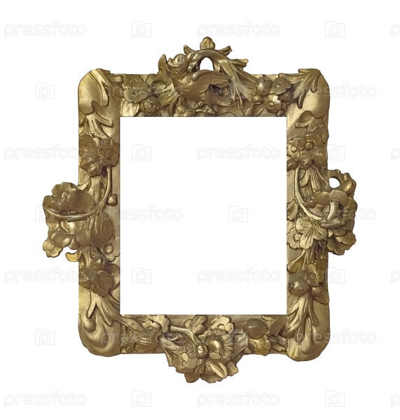 Золотая рамка для картин, зеркал или фото, изолированных на белом фоне. Элемент дизайна с обтравочным контуром