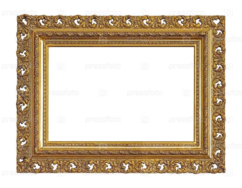 Золотая рамка для картин, зеркал или фото, изолированных на белом фоне. Элемент дизайна с обтравочным контуром