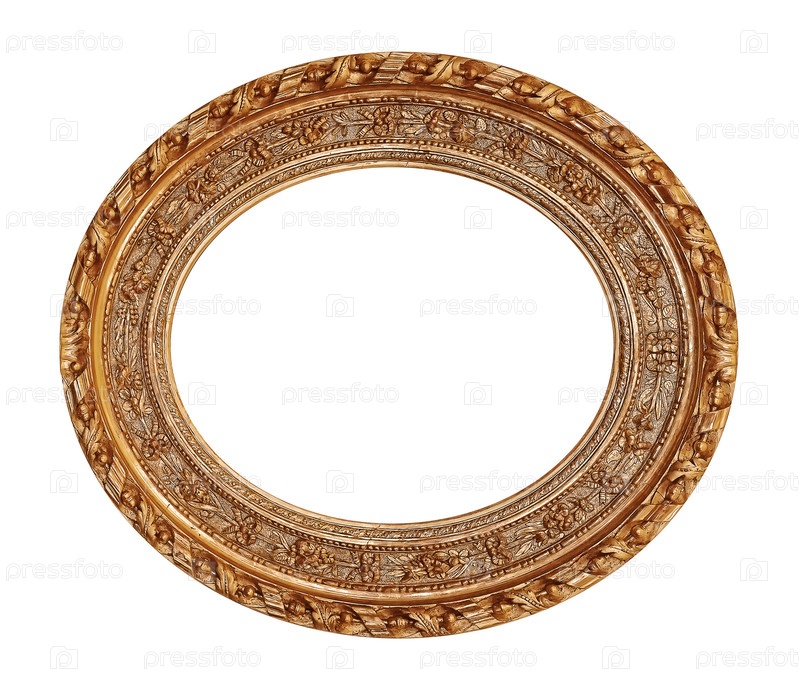 Золотая овальная рама для картин, зеркал или фотографий на белом фоне