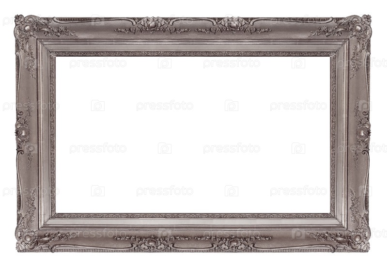 Панорамная серебряная рама для картин, зеркал или фотографий на белом фоне