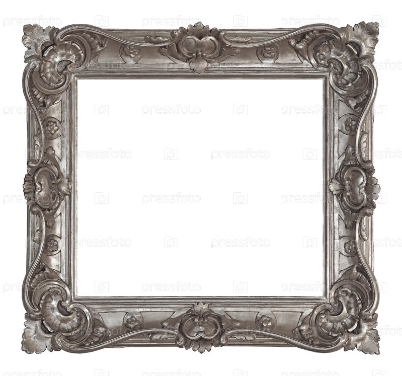 Серебряная рама для картин, зеркал или фотографий на белом фоне