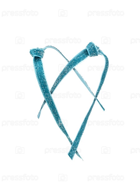 Текстурированный узор в форме сердца с бирюзовыми текстильными блестками, изолированный на простом белом фоне