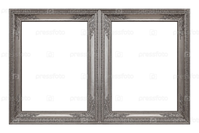 Двойная серебряная рама (диптих) для картин, зеркал или фотографий, изолированных на белом фоне