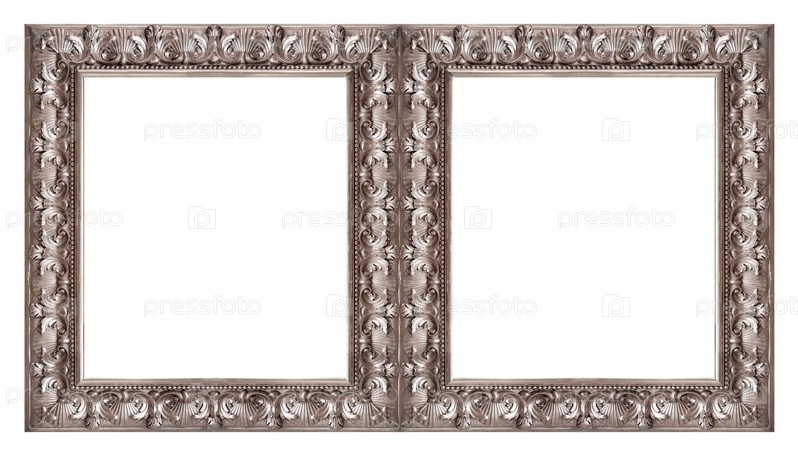 Двойная серебряная рама (диптих) для картин, зеркал или фотографий, изолированных на белом фоне