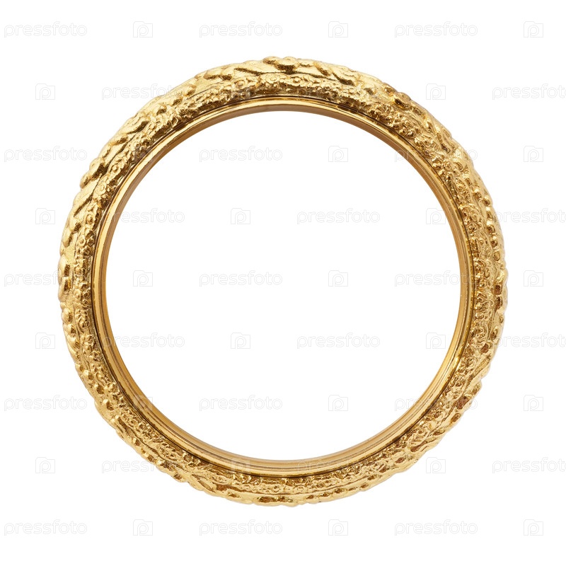 Золотая круглая рамка для картин, зеркал или фотографий на белом фоне