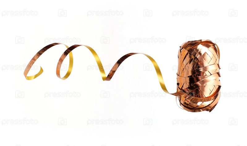 Праздничный рулон золотой ленты, изолированный на белом фоне