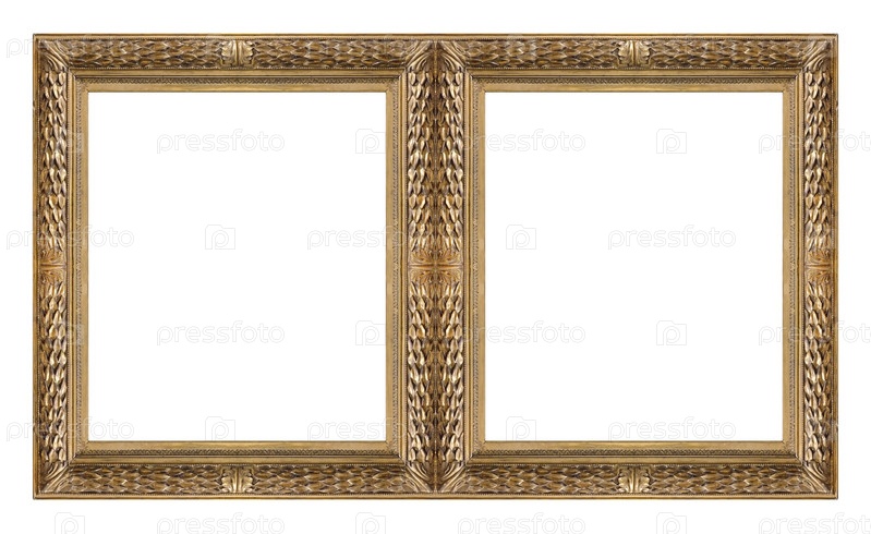 Двойная золотая рама (диптих) для картин, зеркал или фотографий, изолированных на белом фоне