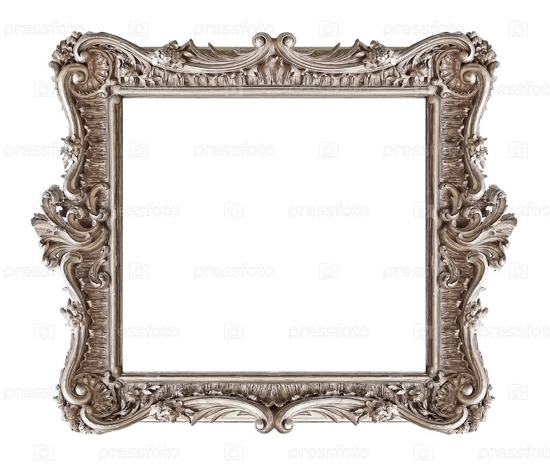 Серебряная рама для картин, зеркал или фотографий на белом фоне