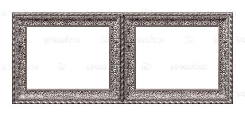 Двойная серебряная рама (диптих) для картин, зеркал или фотографий, изолированных на белом фоне