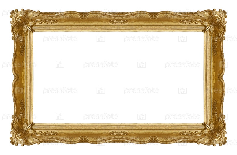 Панорамная золотая рамка для картин, зеркал или фотографий, изолированных на белом фоне. Элемент дизайна с обтравочным контуром