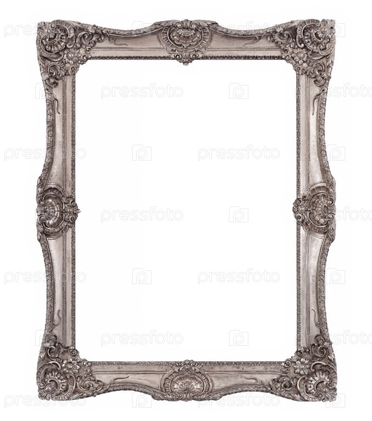 Серебряная рама для картин, зеркал или фотографий на белом фоне