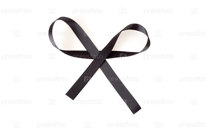 Декоративный черный шелковый бант, изолированный на белом фоне. Элемент дизайна с обтравочным контуром