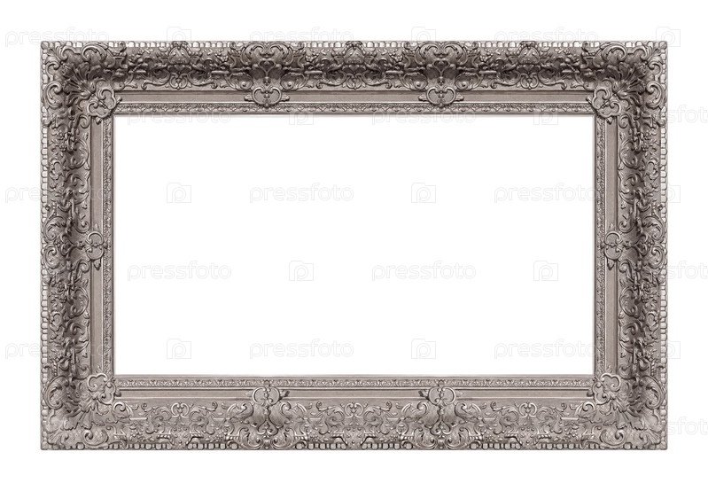 Панорамная серебряная рама для картин, зеркал или фотографий на белом фоне