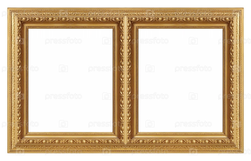 Двойная золотая рама (диптих) для картин, зеркал или фотографий, изолированных на белом фоне
