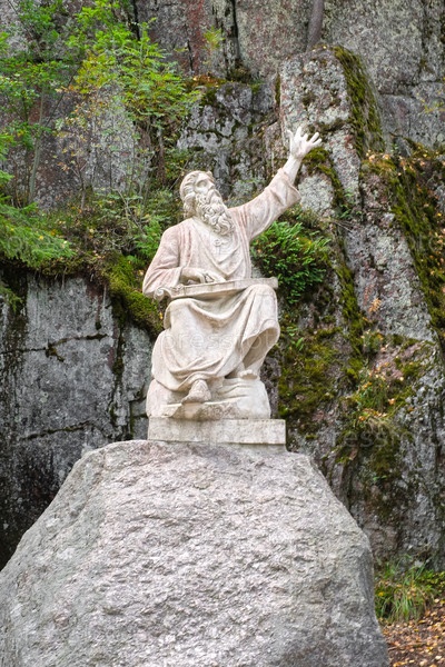 Парк Монрепо барона Людвига Генриха фон Николая. Выборг, Россия. Статуя героя эпоса «Калевала» Вяйнямейнена