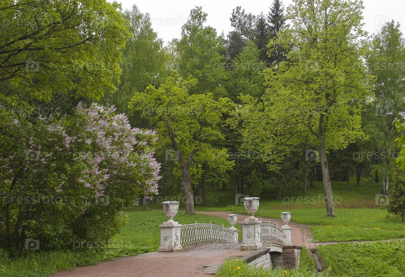 Царский парк Павловск летом с мраморным мостом через реку Славянка