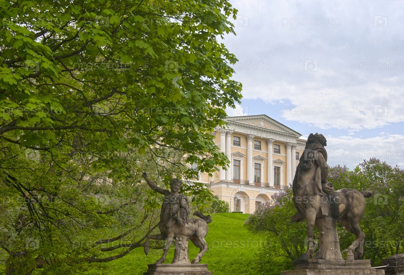 Императорский парк и дворец Павловск летом с мраморным мостом через реку Славянку