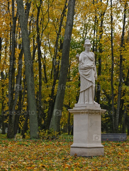 Гатчина (Россия, Санкт-Петербург). Мраморная статуя Афины (Верхний Голландский сад), осенний вид