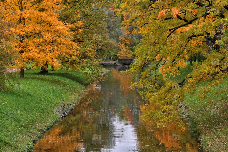 Вид на Обводной канал в Царском Селе (Санкт-Петербург) красивым осенним днем