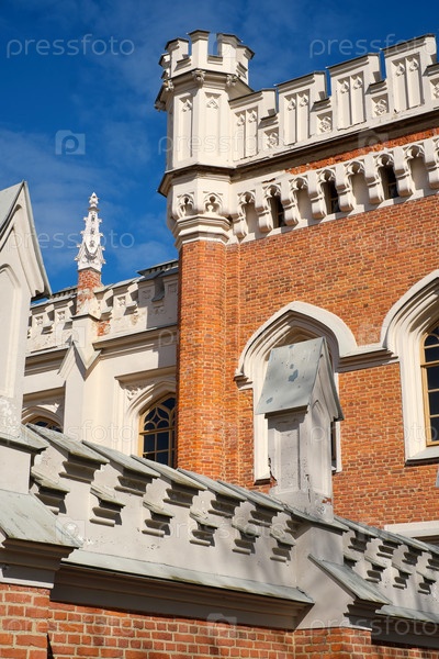 Россия, Санкт-Петербург, Петродворец, Императорские дворцовые конюшни, вид на фоне синего неба
