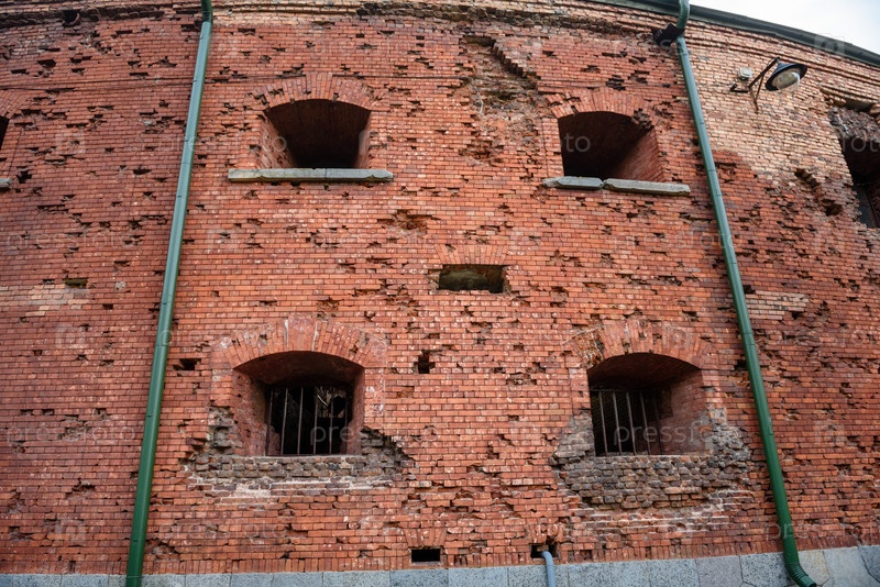 Беларусь, Брест, август 2023 г.: руины из красного кирпича в Брестской крепости во время войны