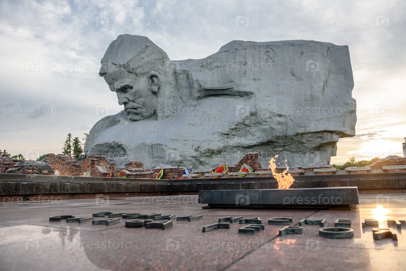 Беларусь, Брест, август 2023: Мемориальный памятник крепости-герою. Брестская крепость. Памятник защитникам крепости и Вечный огонь