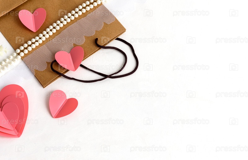 Фон для Дня святого Валентина. Розовые сердечки и цветы на светлом фоне. Концепция праздника Дня святого Валентина