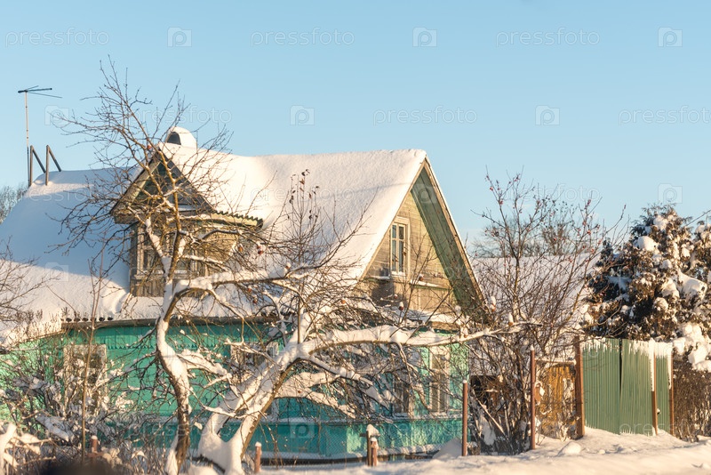 Россия, Санкт-Петербург, декабрь 2024 г.: Частные дома за городом зимой в солнечный день