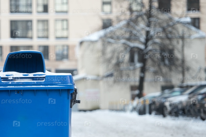 Мусорный контейнер в городском дворе зимой