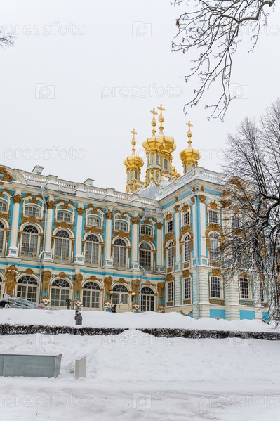 Россия, Санкт-Петербург, 2024 Январь: Екатерининский дворец в Царском Селе зимой. Зимний пейзаж