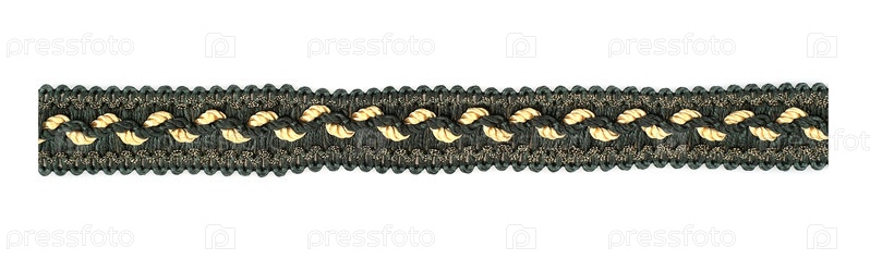Зеленая и золотая текстильная лента, изолированная на белом фоне