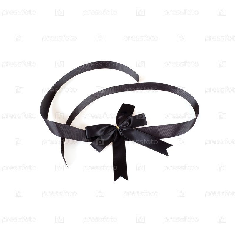 Декоративный черный шелковый бант и лента, изолированные на белом фоне