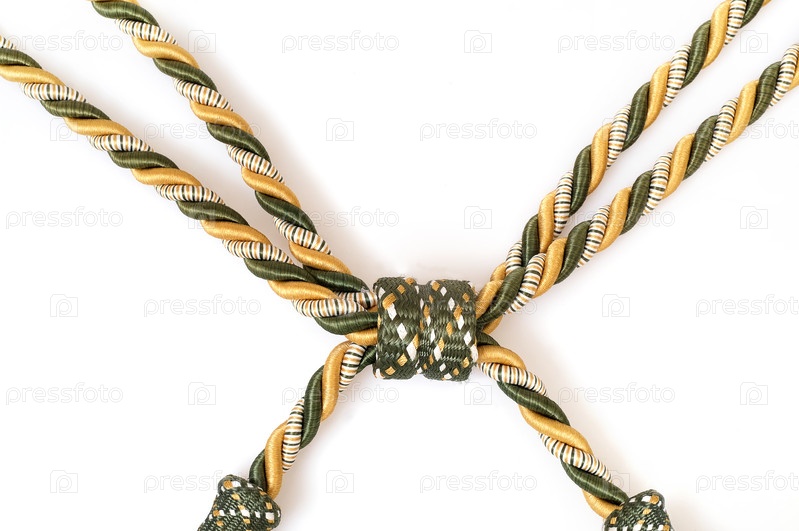Шелковая красная и золотая веревка, изолированная на белом фоне
