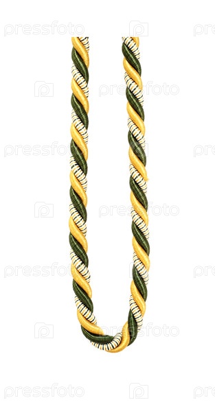 Шелковая красная и золотая веревка, изолированная на белом фоне