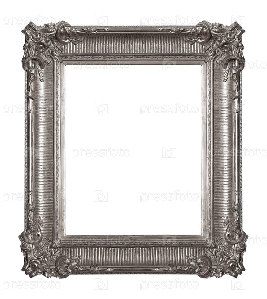 Серебряная рама для картин, зеркал или фотографий на белом фоне