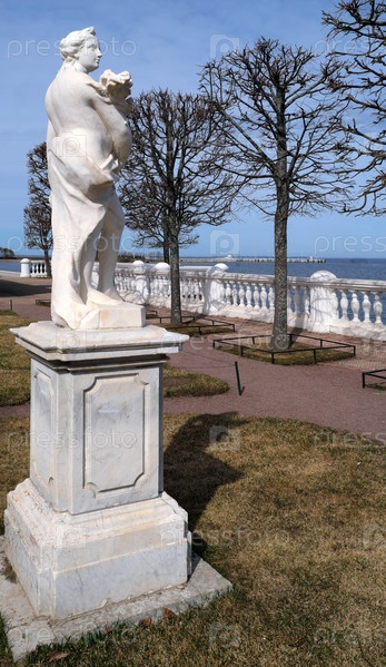 Вид на Финский залив с террасы дворца Монплезир (Петергоф, Санкт-Петербург) весной