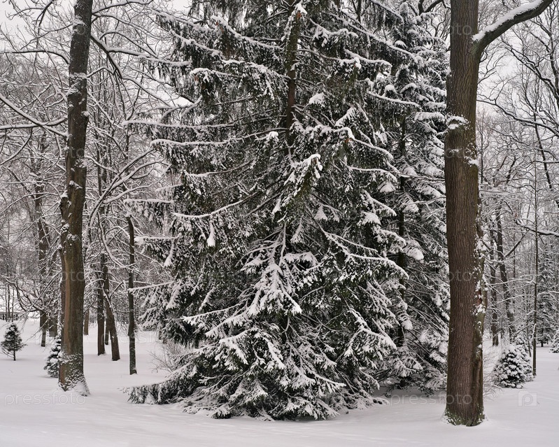 Зимний пейзаж в нижнем парке Петродворце (Петергоф, Санкт-Петергоф)