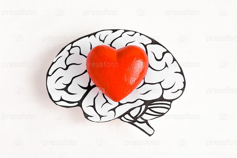 Красное сердце внутри человеческого мозга является символом любви, здоровья и профилактики инсульта