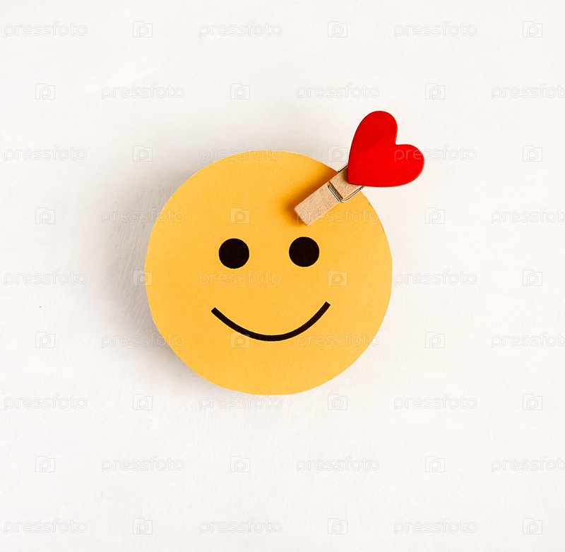 Символ счастливого человека — круглое лицо с сердцем на белом фоне