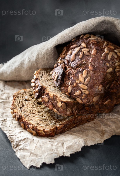 Свежий зерновой хлеб на темном столе
