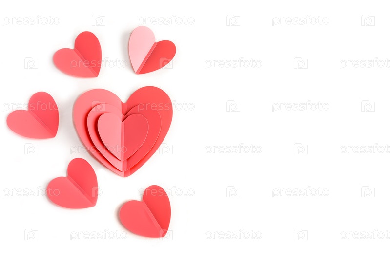 Фон ко Дню святого Валентина. Розовые сердечки и цветы на светлом фоне. Плоский макет и место для копирования