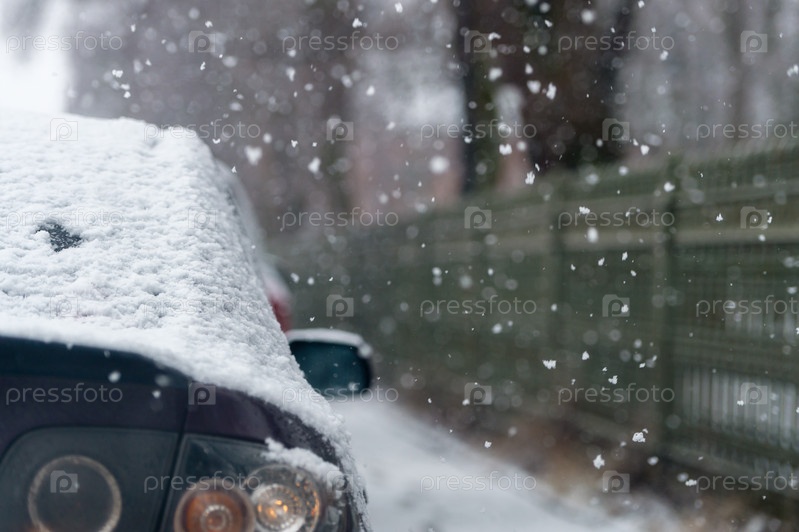Автомобили во время сильного снегопада — крупный план