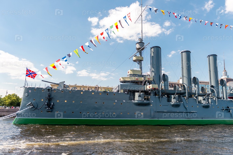 Россия, Санкт-Петербург, 24.07.2024: Легендарный крейсер «Аврора» в Санкт-Петербурге крупным планом