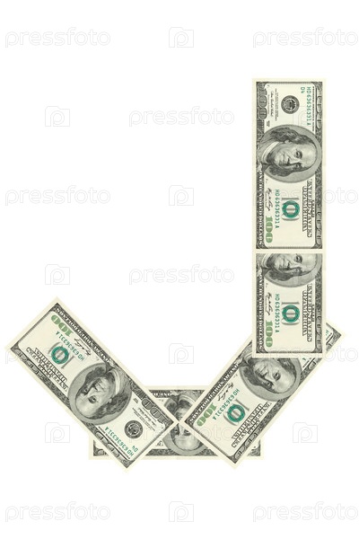 Буква J из долларов на белом фоне